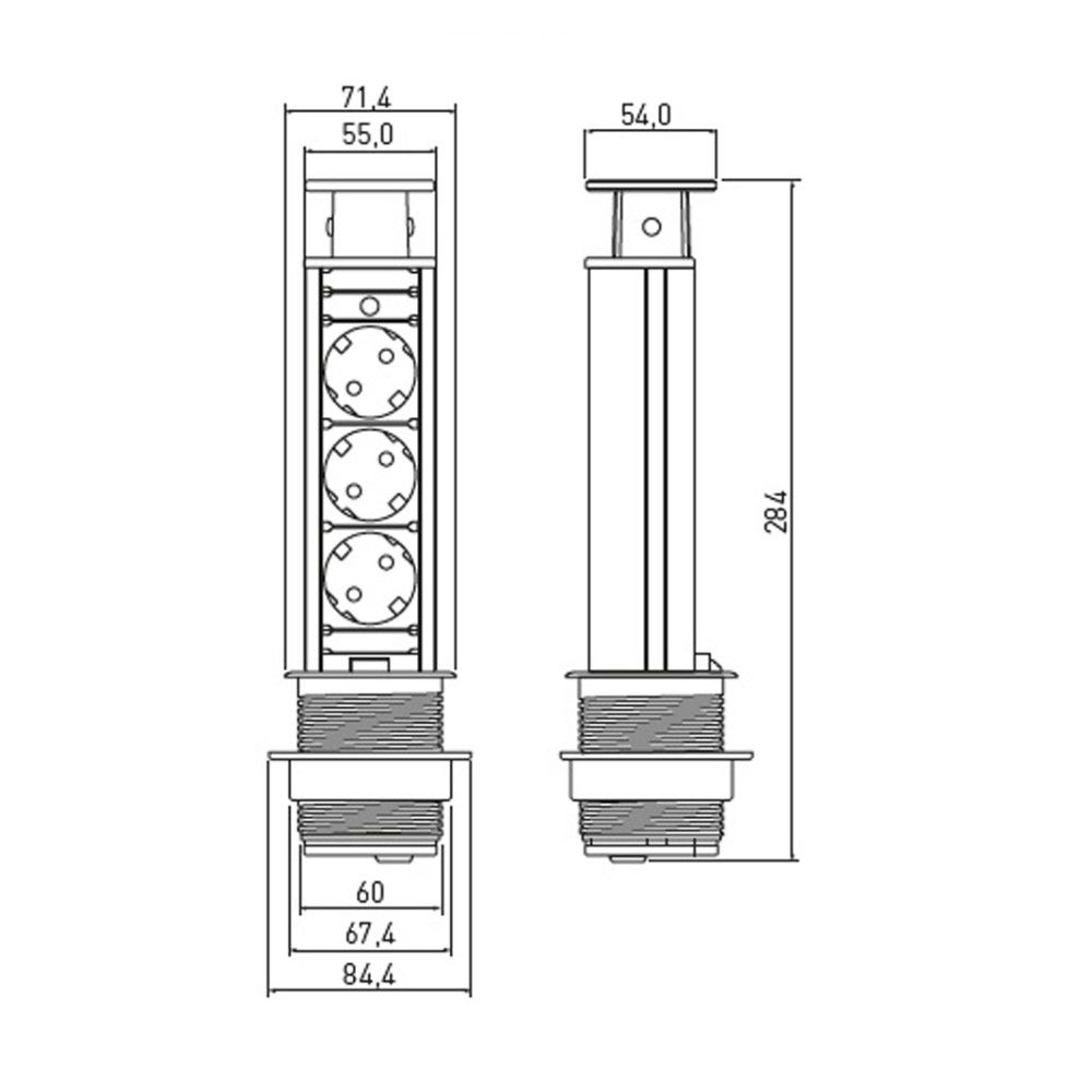 Domov / ... / OKOVJE IN PRITRDILNI MATERIAL / POHIŠTVENO OKOVJE / POHIŠTVENI ROČAJI IN OBEŠALNIKI / POHIŠTVENA RAZSVETLJAVA IN ELEKTRO MATERIAL / VTIČNICA IZVLEČNA FI60 mm VTIČNICA IZVLEČNA FI60 mm Izvlečna (dvižna) vtičnica FI60 mm, PVC ohišje, srebrna, 3 šuko vtičnice. AE-BPW3S60-80.